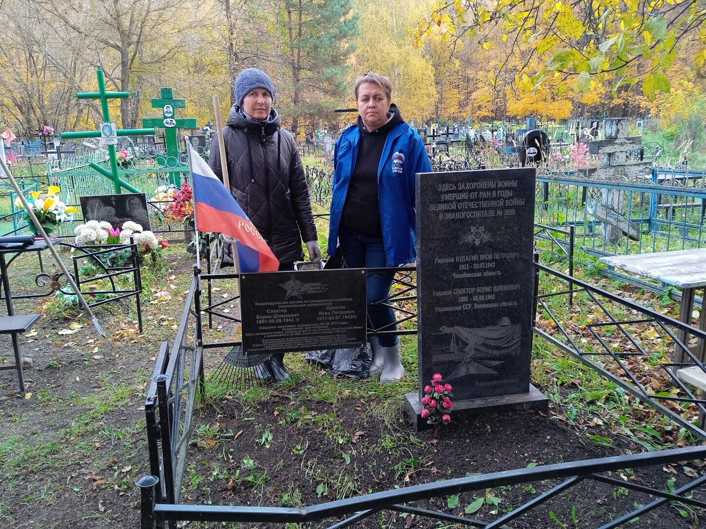 могилами ветеранов Великой Отечественной войны и учителей, ушедших в мир иной. На кладбище еще остались небольшие обелиски или памятники со звездой и всем понятно, что там похоронены участники войны. Сначала привели в порядок территорию воинского захоронения солдат, умерших от ран в поимском госпитале, убрав опавшие листья и ветки деревьев. Навели порядок и на заросшей травой могиле Почетного гражданина с. Поим Крянина Ксенофонта Петровича - фронтовика и мастера, изготовившего памятник-обелиск односельчанам, погибшим в годы Великой Отечественной войны,